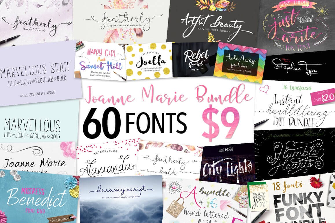 60 Fabulous Fonts From Brush Lettered to Calligraphy – only $9!