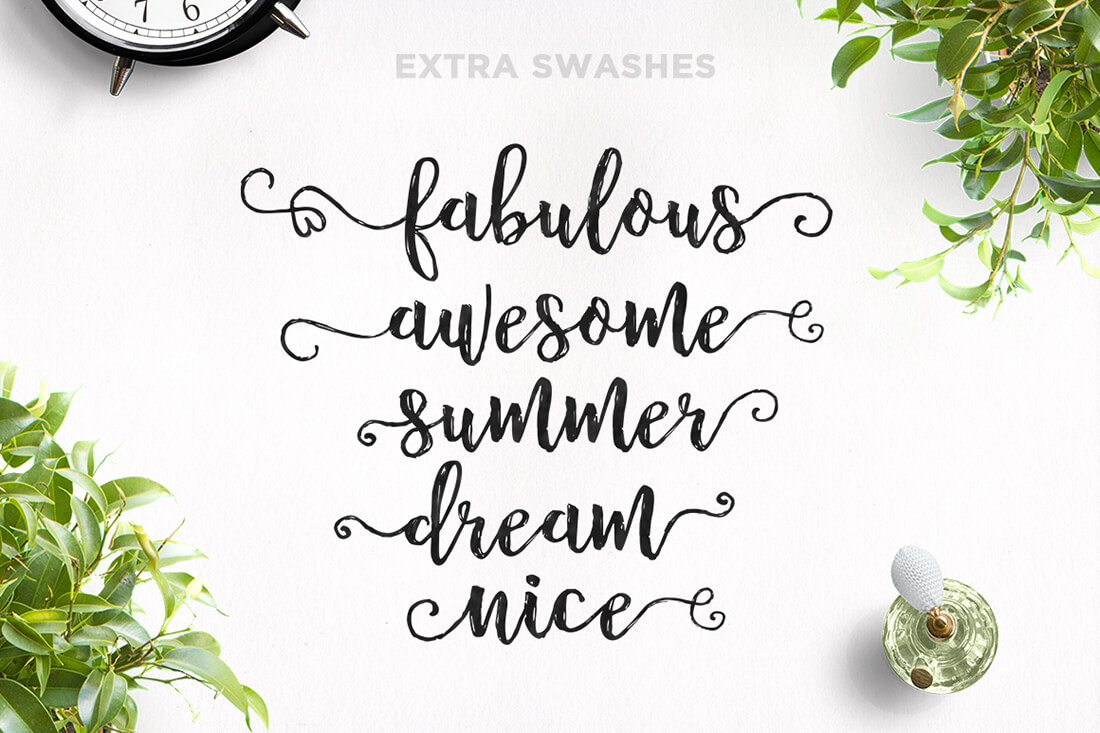 - Includes OpenType features such as ligatures, stylistic alternates, swashes and loads more.