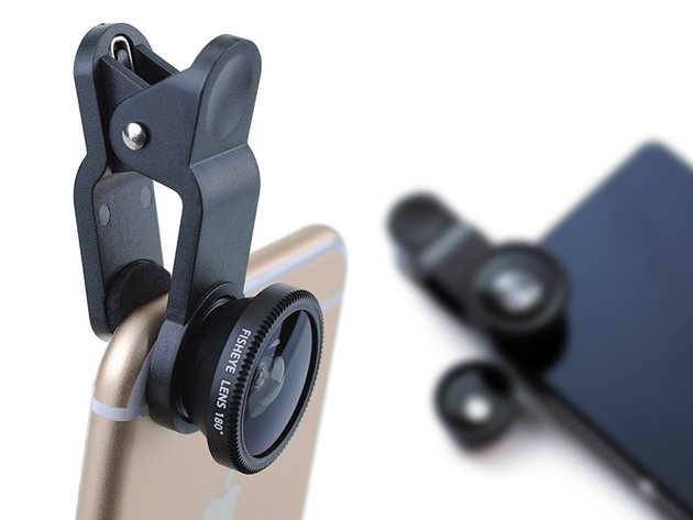 Phone cameras these days are certainly impressive, but what’s more impressive, is how easily augmented they are. With this Universal 3-in-1 Clip-On Lens Kit, you can dramatically improve the quality and capabilities of your phone’s camera in just seconds. It’s as simple as clipping either a 180 degree fish eye, wide-angle, or macro lens on to your device and snapping away!